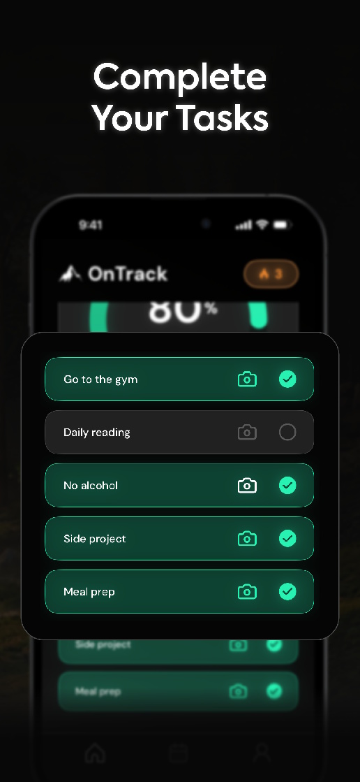 Show up each day, complete your tasks (with or without photos), build your streaks, and look back at how far you've come.